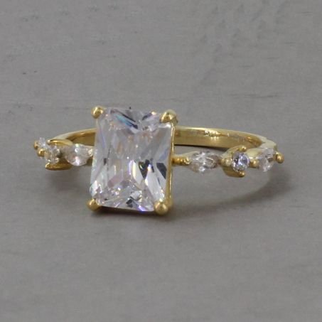 925 Sterling Silver Jewellery Beautiful Cubic Zirconia GemStone Ring Gold-Plated Octagon Ring Faceted Jewellery.