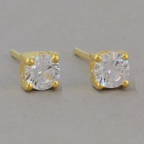 925 Sterling Silver Jewelry White Cubic Zirconia Stud Earring Beautiful Gold Plated Jewelry Dainty Round Faceted Jewelry.