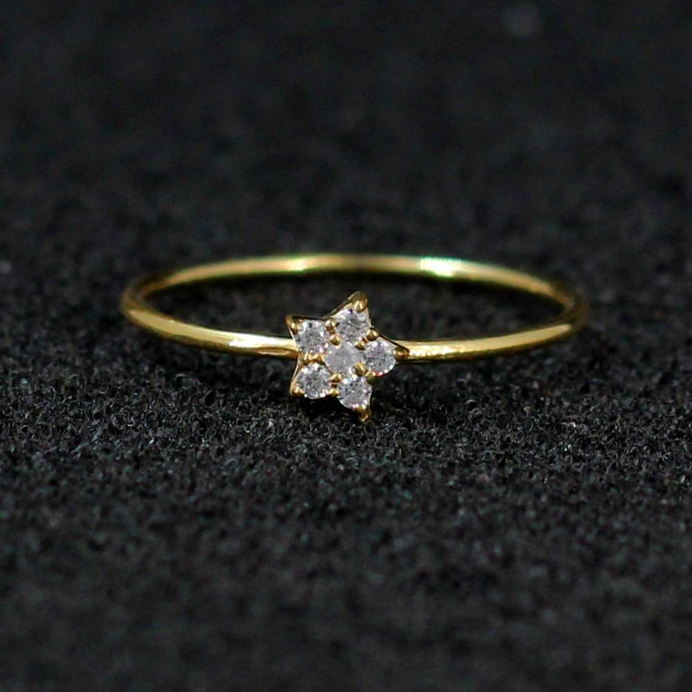 925 Sterling Silver Ring Gold Plated Beautiful Star Ring Dainty Celestial Ring With Cubic Zirconia Cz Star Jewellery