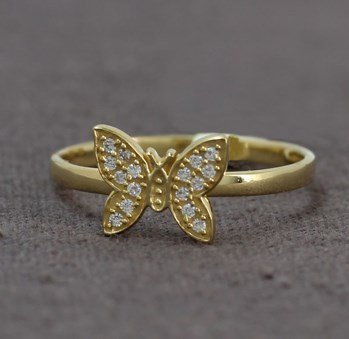 925 Sterling Silver Ring Gold-Plated Jewellery Cubic Zirconia Ring Beautiful Butterfly Ring With Unique Gemstone Zirconia.