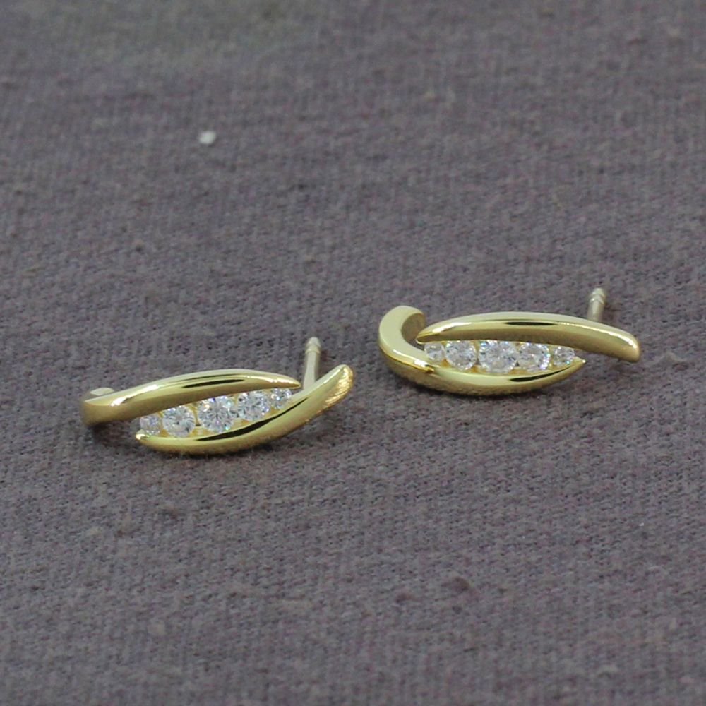 925 Sterling Silver Stud Earring Beautiful White Cubic Zirconia GemStone Earring Gold-Plated Jewelry