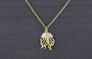 Antique Jellyfish Design Beautiful Necklace 925 Sterling Silver Dainty Necklace With Cubic Zirconia Gold-Plated CZ Necklace.