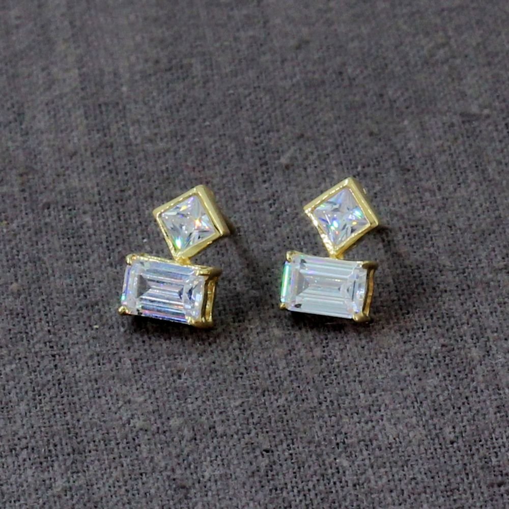 Cubic Zirconia Stud Earring 925 Sterling Silver Jewelry Beautiful Gold Plated Jewelry Square & Octagon Dainty Earring