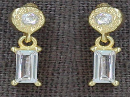 Cubic Zirconia & White Cubic Zirconia Beautiful Gemstone Jewelry Gold Plated Jewelry 925 Sterling Silver Earring Crystal Baguette Earrings.