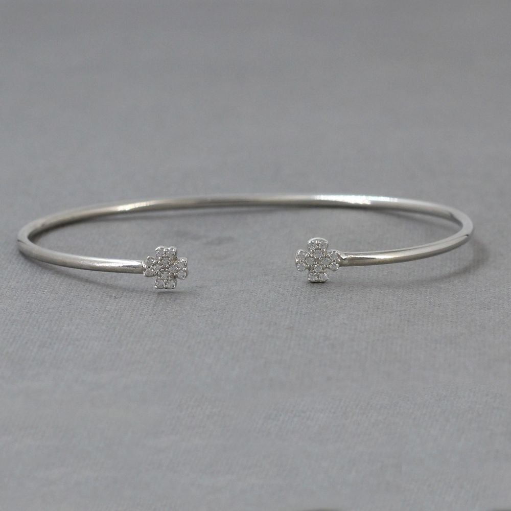 Floral Bangle Bracelet 925 Sterling Silver Cubic Zirconia Bracelet.