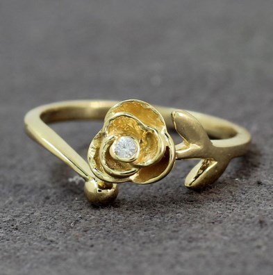 Gold-Plated Rose Ring With Cubic Zirconia 925 Sterling Silver Ring Beautiful Floral Ring Dainty CZ Ring