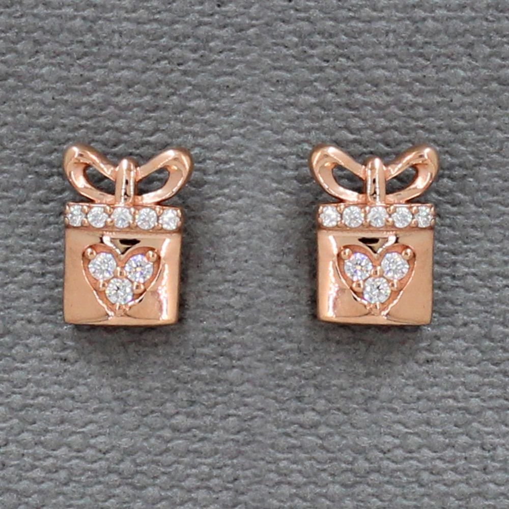 Rose Gold Stud Earring Locked Heart Shaped Cubic Zirconia Stud Earring 925 Sterling Silver Stud Earring Jewellery.
