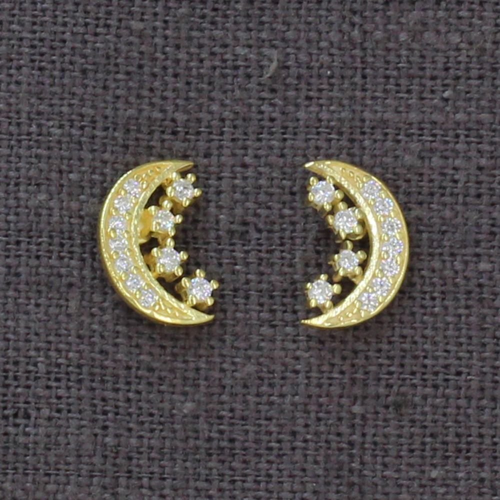 Star Moon Studs 925 Sterling Silver Earring, Dainty Earring, Cubic Zirconia Star Shaped  Stud Earrings Gold Plated Jewelry