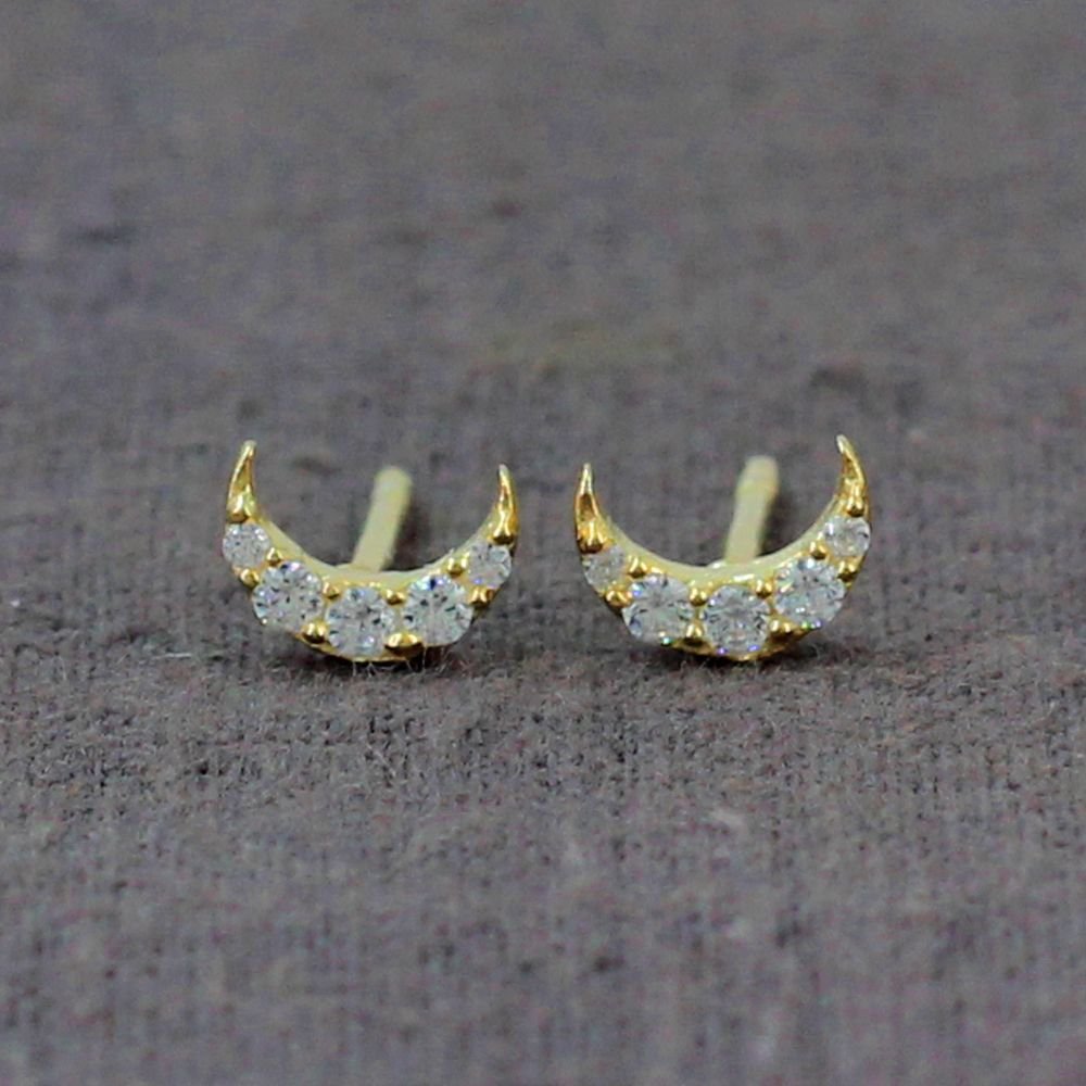 Stylish Gold Plated Jewelry 925 Sterling Silver Earring Faceted Cubic Zirconia Gemstone Jewelry Half Moon Studs Earring